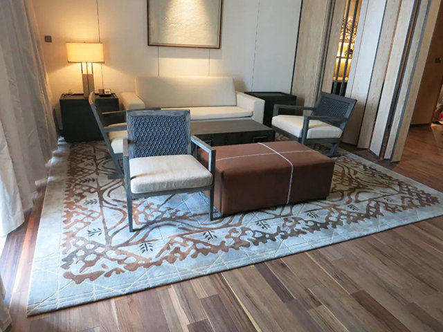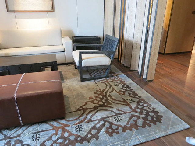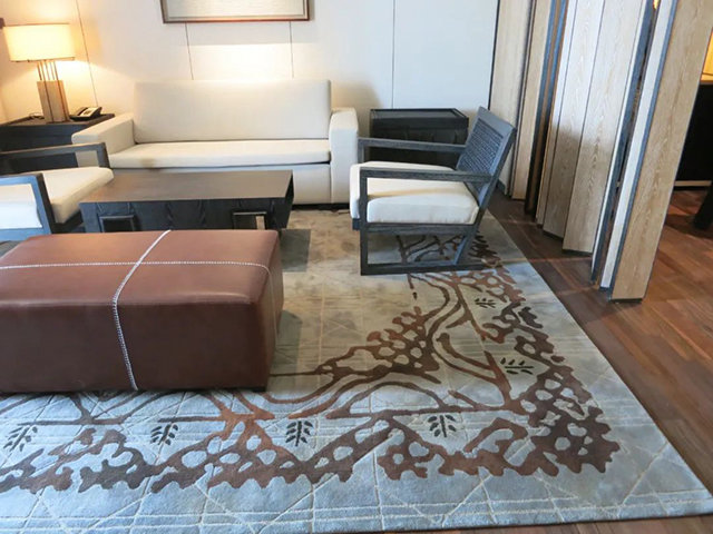 ? ? 該項目使用近一萬平米阿克明與手工地毯,設(shè)計師在設(shè)計層面一直致力于有別于其他產(chǎn)品的風(fēng)格,能更大的體現(xiàn)產(chǎn)品的個性,力求體現(xiàn)產(chǎn)品的獨特性和個性化。項目中大量的使用了高端手工地毯,讓客人能在地毯上置身其中,成為情感容器,讓酒店與客人之間能夠親密的接觸,承載一路的疲憊,讓人渴望融于這海天一色的自然與美好愿景之中,更寄托著人們心靈深處那一絲浪漫的詩意。