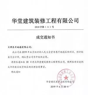 ? ? 2018年1月份,大會(huì)堂貴州廳裝修改造,地毯臨時(shí)更換為尼龍印花地毯,簽訂尼龍印花合同216平米,此為第一次與大會(huì)堂管理局下設(shè)裝修公司合作,該地毯在18年11月正式更換為手工地毯,簽訂手工地毯合同181.48平米,隨后在18年12月中標(biāo)云南廳手工地毯,簽訂310平米,19年6月份中標(biāo)香港廳地毯采購,簽訂合同592平米。