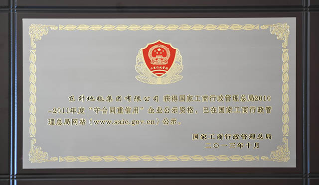 ? ? 近日,國(guó)家工商行政管理總局發(fā)布2010-2011年度“守合同重信用”企業(yè)公示名單,東升地毯集團(tuán)有限公司榜上有名,2003年迄今,東升地毯集團(tuán)已連續(xù)9年榮獲“全國(guó)重合同守信用企業(yè)”殊榮。