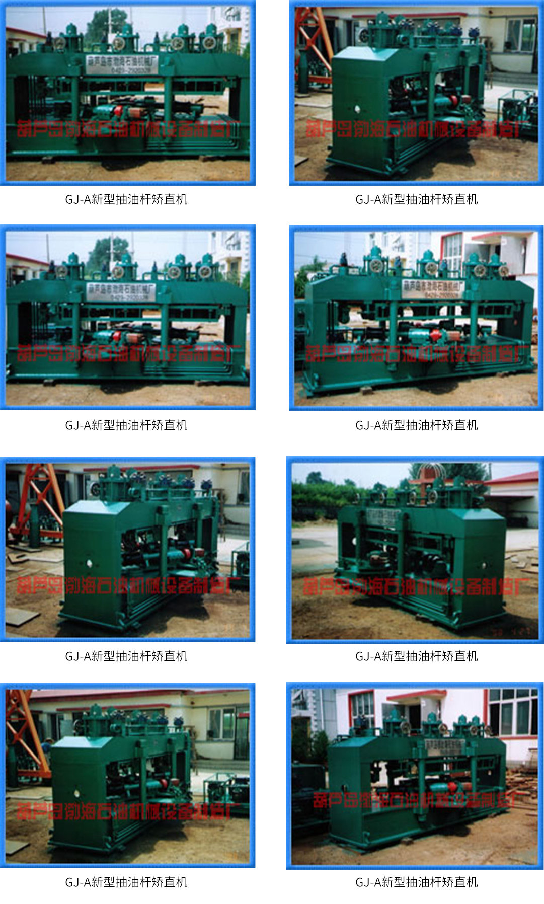 1、GJ—A型抽油桿矯直機(jī)是矯直空芯桿和實(shí)芯桿兩用矯直機(jī)??沙C直Φ16—Φ40的實(shí)芯桿,也可矯直Φ32—Φ42的空芯桿,和管徑Φ60以下,最大壁厚6mm以下的油管,矯直精度達(dá)到2mm/m。1、機(jī)架由上體、下體、四根立柱組成。